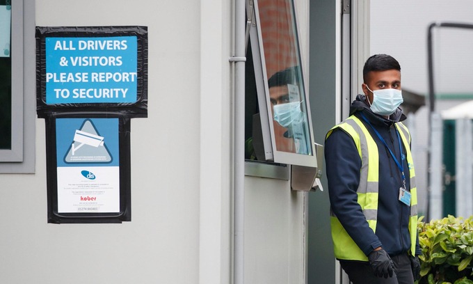 Nhân viên an ninh tại cổng ra vào nhà máy chế biến thịt Kober ở Cleckheaton tháng 6/2020. Ảnh: PA.