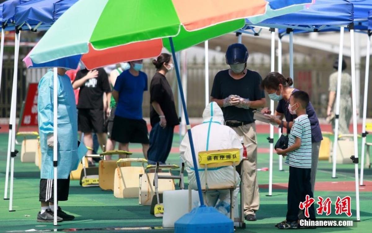 Xét nghiệm đại trà Covid-19 tại thành phố Dương Châu, tỉnh Giang Tô (Trung Quốc) ngày 5/8. Ảnh: Chinanews.
