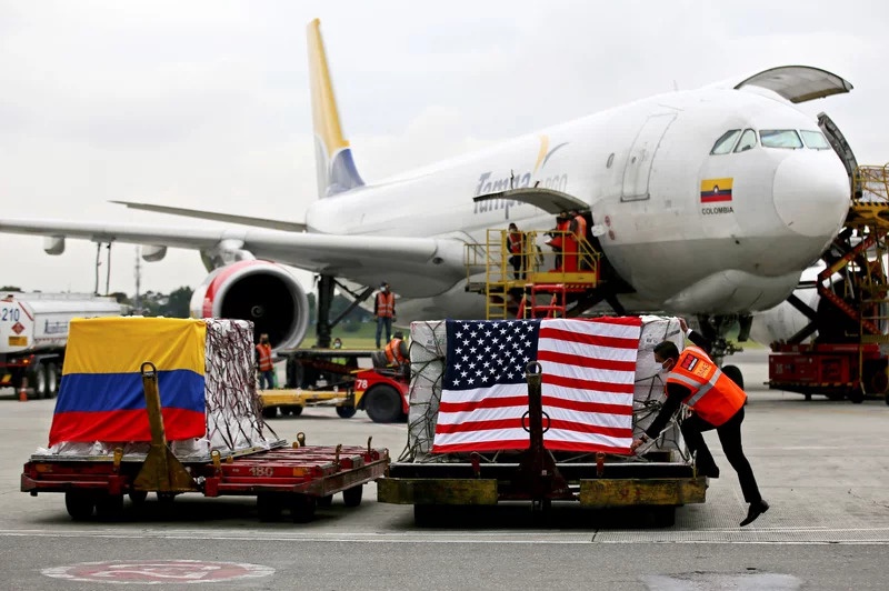 Lô vaccine Moderna được Mỹ chuyển giao cho Colombia. Ảnh: AFP.