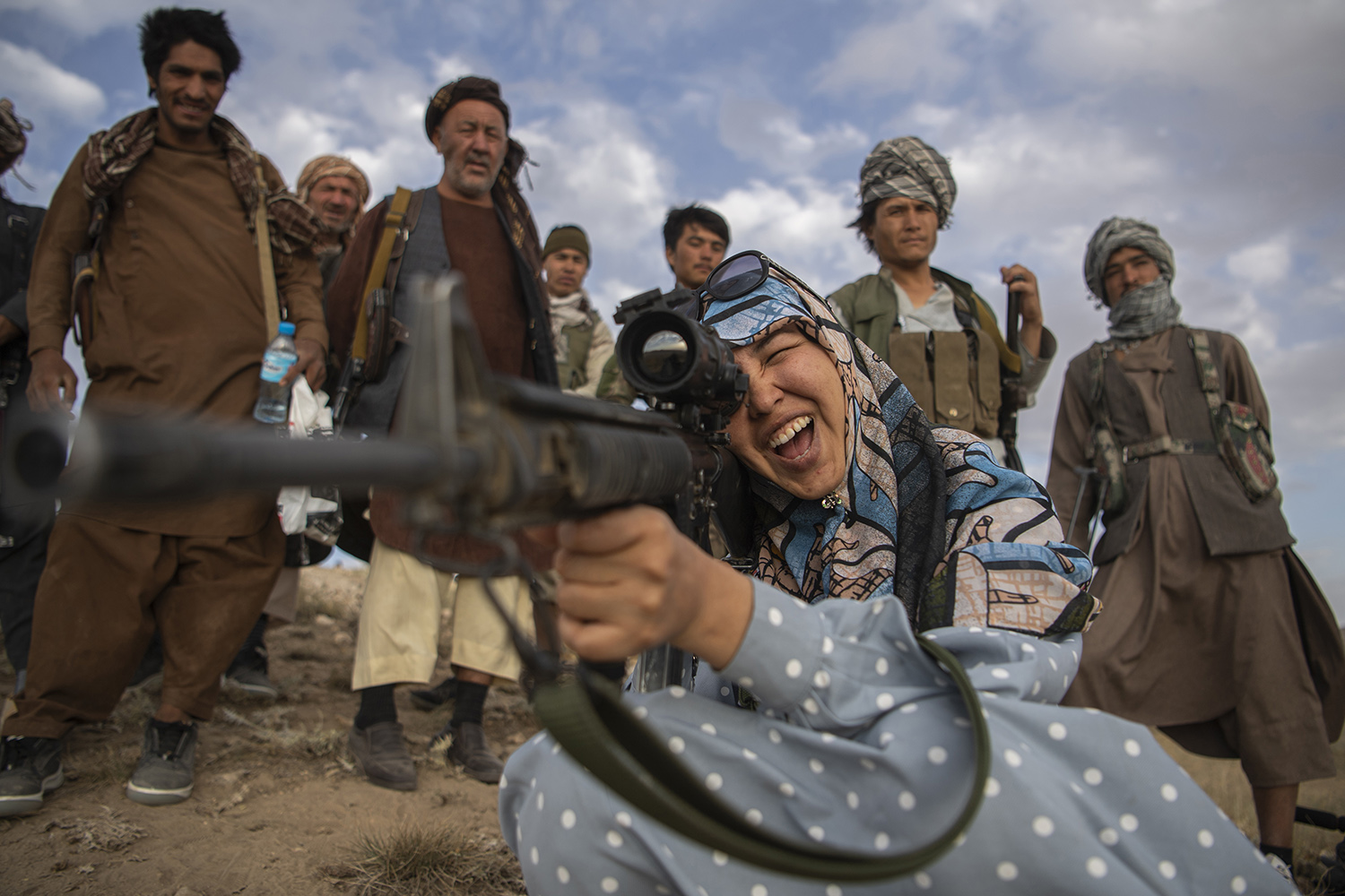 Thống đốc quận Charkint Salima Mazari thử súng khi bà đến thăm các lực lượng ở quận Charkint của tỉnh Balkh, Afghanistan, vào ngày 29 tháng 6. Ảnh FP