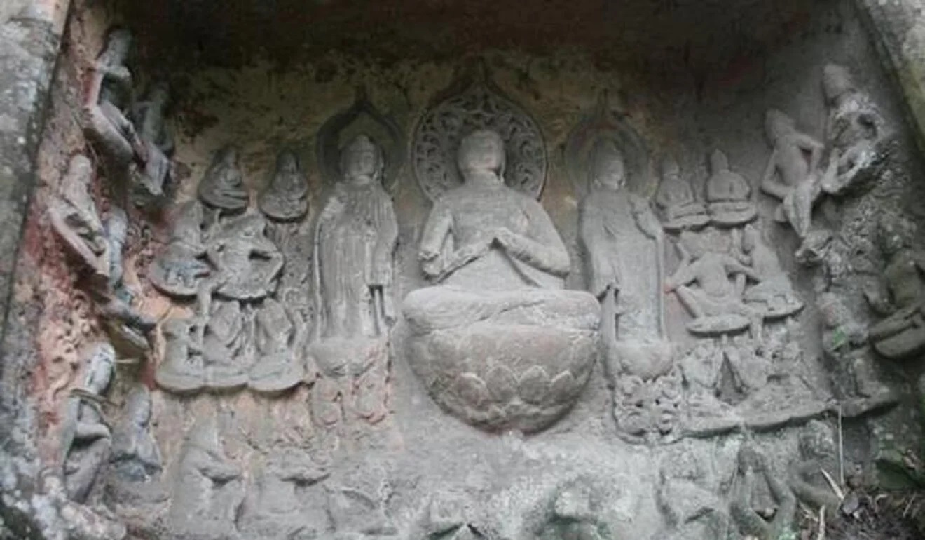 Các bức tượng Phật nghìn năm được khắc trên vách đá của một ngon núi ở tỉnh Tứ Xuyên, Trung Quốc. Ảnh: Baidu