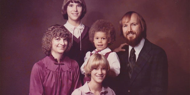 Hình ảnh Sarah với gia đình bố mẹ nuôi