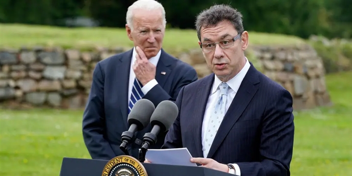 Tổng thống Mỹ Joe Biden (trái) và giám đốc điều hành công ty Pfizer Albert Bourla. (Ảnh: AP)