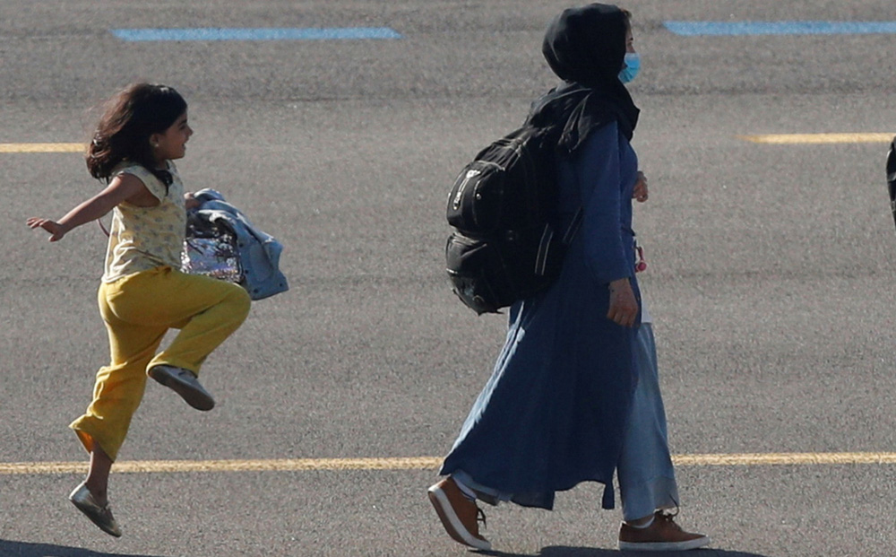 Bức ảnh bé gái người Afghanistan nhảy chân sáo trên đường băng sân bay ở Bỉ sau khi được sơ tán khỏi quê hương bị chiến tranh tàn phá hiện đang gây sốt toàn cầu.