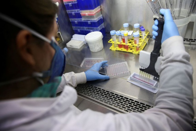 Một nhà khoa học kiểm tra mẫu thử trong khuôn khổ nghiên cứu dùng phân tử trong nọc độc rắn để chống lại SARS-CoV-2 (Ảnh: Reuters).
