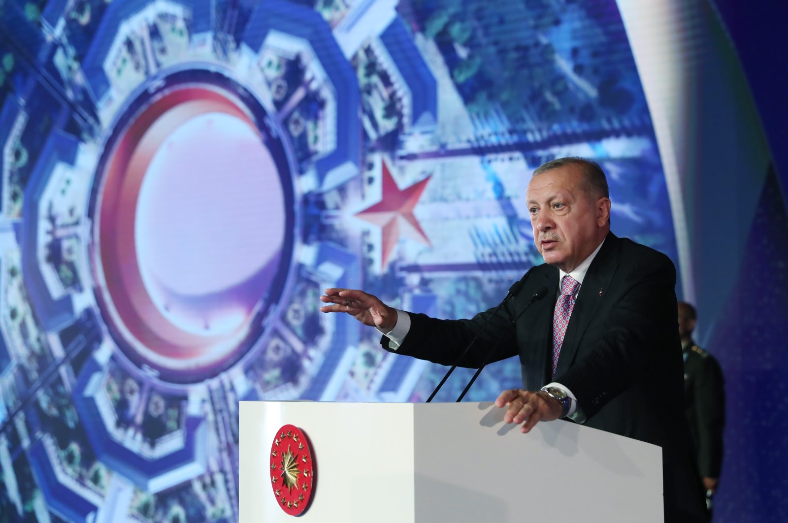 Tổng thống Thổ Nhĩ Kỳ Recep Tayyip Erdogan trong lễ khởi công dự án Crescent Star ngày 30/8. Ảnh: AA