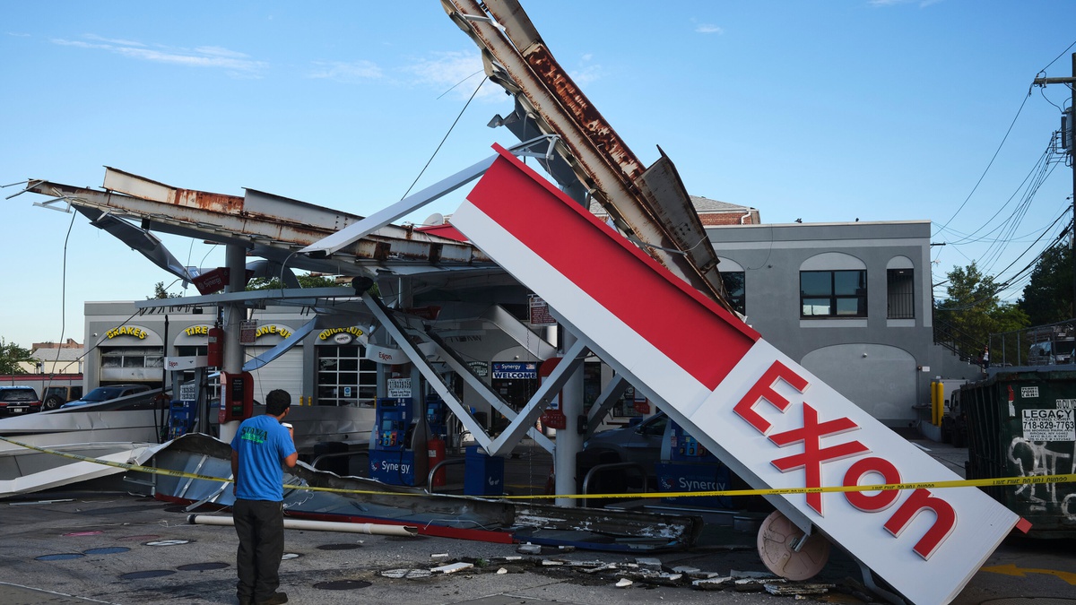 Một trạm xăng dầu tại Mỹ bị phá hủy sau khi bão quét qua. Ảnh: New York Times.