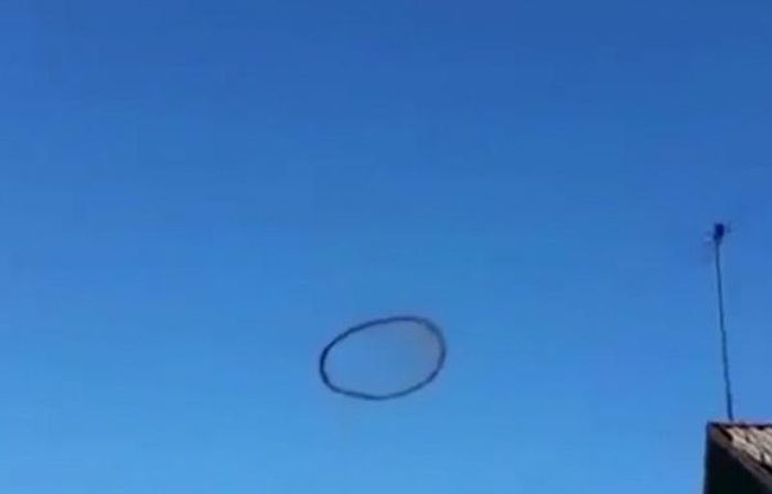 Vòng tròn kỳ lạ xuất hiện trên bầu trời khiến nhiều người hoang mang về nguồn gốc thật sự của nó. Theo như video được đăng tải, vòng tròn màu đen đầy bí ẩn, đang trôi nổi và như đang xoay vòng, xung quanh được bao phủ bởi một làn khói đen.
