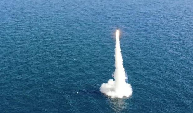 Hình ảnh cắt từ video do Bộ Quốc phòng Hàn Quốc công bố ngày 15/9 cho thấy nước này phóng thử tên lửa từ tàu ngầm (Ảnh: CBS).