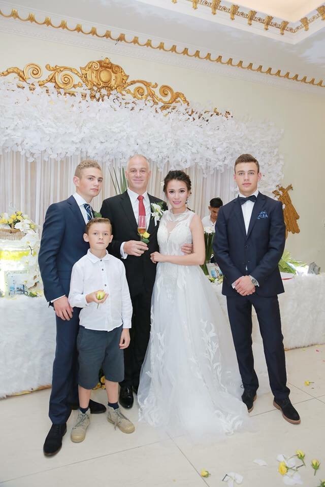 Ngày đám cưới có sự tham gia của 3 con riêng chồng. (Ảnh: M.T)