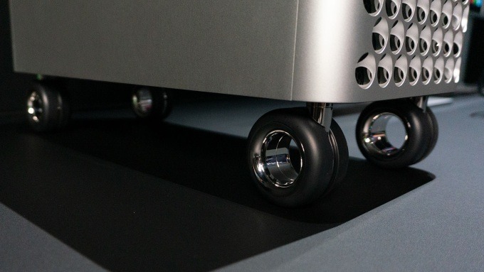 Mac Pro ra mắt năm 2019 với giá từ 6.000 đến 53.000 USD (137 triệu - 1,2 tỷ đồng) tùy cấu hình, nhưng Apple vẫn có cách để lấy thêm tiền từ người dùng bằng các phụ kiện đi kèm. Máy này nặng gần 20 kg, nên nếu muốn di chuyển dễ dàng, người dùng cần 4 bánh xe, với giá 100 USD mỗi bánh. Trong khi đó, các hãng khác thường gắn sẵn vào thùng máy hoặc tặng kèm. Dù đắt đỏ, bánh xe của Apple cũng không có khóa chống lăn. Vì vậy, nếu không cẩn thận, thiết bị có thể lăn đi bất cứ nơi nào.