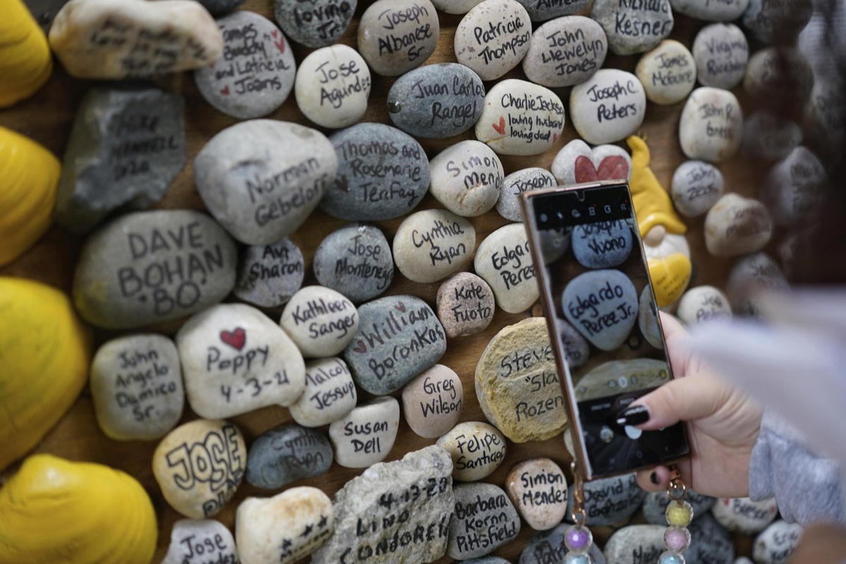 Tên những người qua đời vì Covid-19 tại Đài tưởng niệm Rami's Heart ở Wall Township, New Jersey. Ảnh: AP.