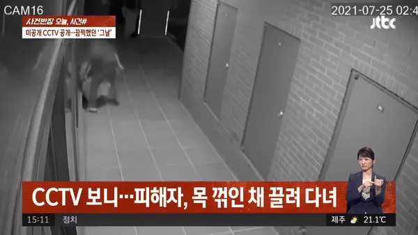 Sau đó, hành động của hắn càng thêm điên cuồng hơn khi đã đánh bạn gái bất tỉnh. Không sợ sệt vì hành vi thú dữ của mình đã gây thương tích nghiêm trọng cho bạn gái, hắn tiếp tục kéo lê Ye Jin từ tầng 1 lên tầng 8, nơi hắn ở, rồi trở lại tầng trệt của tòa nhà. Lúc này, nạn nhân đã gãy cổ, trán tổn thương do bị đặt nằm sấp dưới sàn. Máu của cô loang lổ ở khắp những nơi mà hắn lôi thân thể cô đến. Mặc cho vậy, hung thủ vẫn không dừng lại.