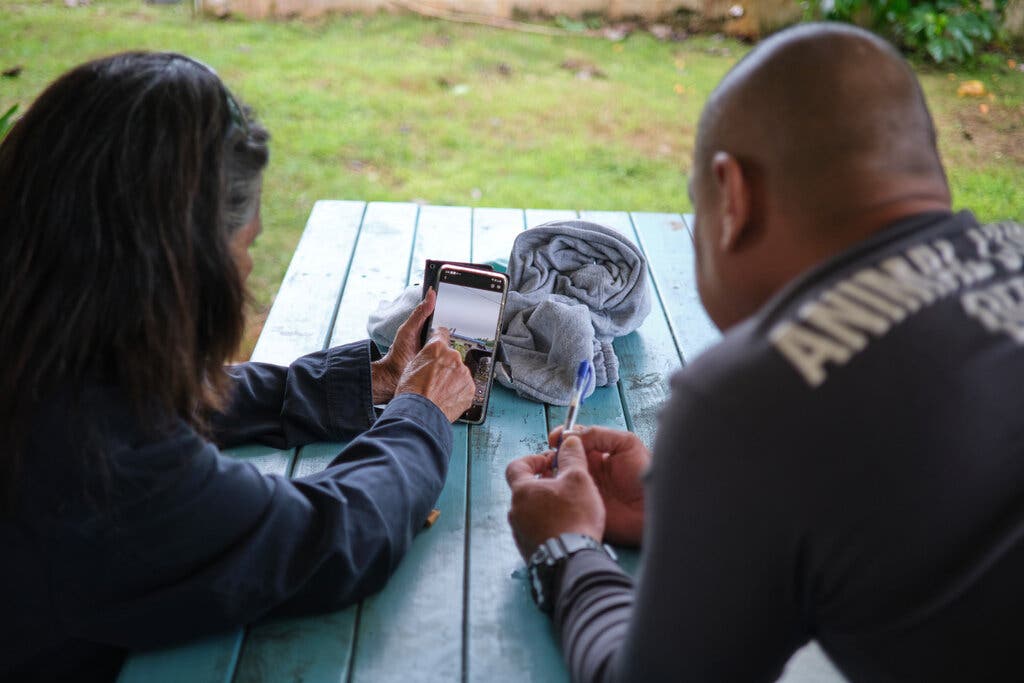 Ông Nicholas Ibanez (phải), nói chuyện với các nhân viên bảo tồn ở Yigo, đảo Guam. Ảnh: NYTimes