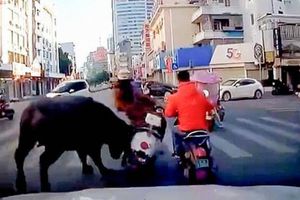 Con trâu xổng chuồng làm náo loạn đường phố tại Tp.Ngọc Lâm, Khu tự trị Quảng Tây (Trung Quốc) khiến nhiều người bị thương.Hình ảnh ghi nhận tại hiện trường cho thấy, tại một ngã tư đông đúc, khi nhiều người tham gia giao thông đang chờ đèn đỏ bỗng con trâu đột nhiên xuất hiện, húc thẳng vào xe một người phụ nữ.