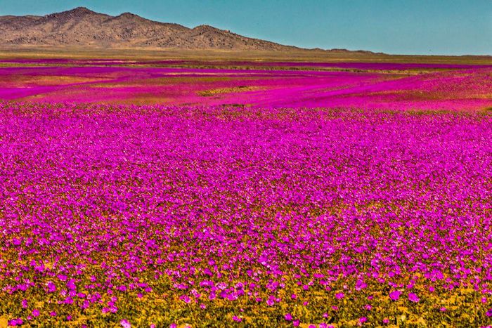 Những bông hoa tím rực rỡ đua nhau nở sau khi được tắm mát bằng cơn mưa lớn. Theo các nhà khoa học, hiện tượng hoa xuất hiện bất thường tại Atacama được gọi là "sa mạc nở hoa - desierto florido". Hiện tượng này xảy ra khi lượng mưa lớn chảy thấm xuống đất, "đánh thức" những hạt giống đang trong trạng thái ngủ và khiến chúng nảy mầm, phát triển tươi tốt rồi nở hoa.