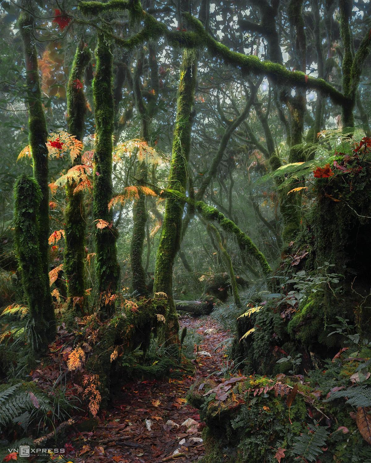 Khi không có nắng, khu rừng nguyên sinh lại âm u, kỳ bí. Khu rừng nguyên sinh với những cây dương sỉ trải khắp nền rừng, một vài cây đã chuyển màu lá. Chuyến đi Tà Xùa được Linh thực hiện vào tháng 11, khi đây là lúc giao mùa, nhiếp ảnh gia có thể bắt được những màu vàng, màu đỏ của mùa thu giữa cánh rừng phủ đầy rêu xanh.