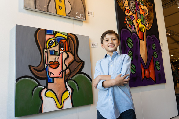 Thần đồng hội họa Andres Valencia giới thiệu tác phẩm của mình tại Tuần lễ Nghệ thuật Miami 2021 - Ảnh: NEW YORK POST