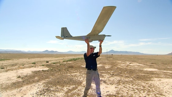 Nhà điều hành của AeroVironment chuẩn bị khởi động máy bay không người lái Puma. Ảnh NBC News