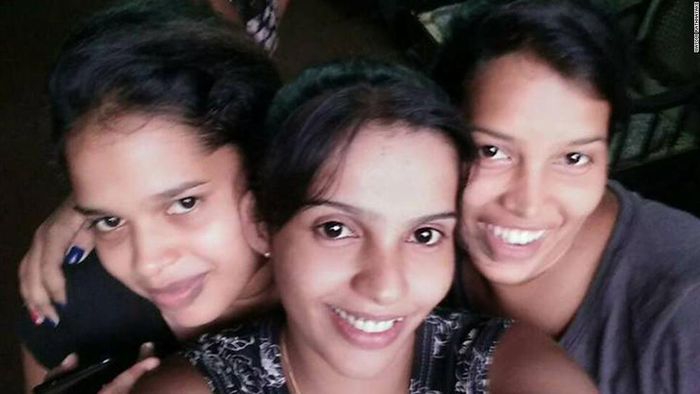 Wishma Rathnayake (giữa) cùng hai em gái Poornima Rathnayake (trái) và Wayomi Rathnayake (phải). Ảnh: CNN.