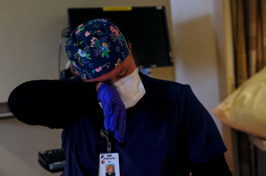 Một y tá tại Trung tâm Y tế Khu vực San Juan, New Mexico, gạt nước mắt khi chứng kiến bệnh nhân Covid-19 thứ 3 của cô qua đời trong tuần này. Ảnh: Reuters.