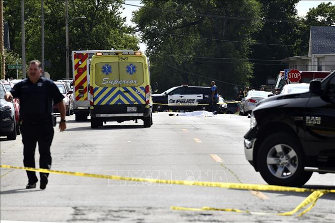 Cảnh sát phong toả hiện trường vụ xả súng tại thành phố Kankakee, bang Illinois, miền Bắc nước Mỹ để điều tra, ngày 26/8/2021 (giờ địa phương). Ảnh minh họa: AP/TTXVN