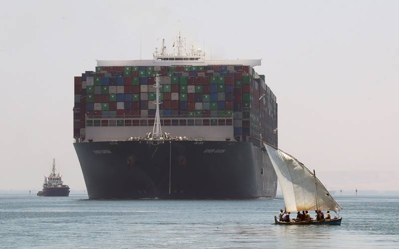 Tàu Ever Given rời kênh đào Suez hồi tháng 7 vừa qua. Ảnh: EPA
