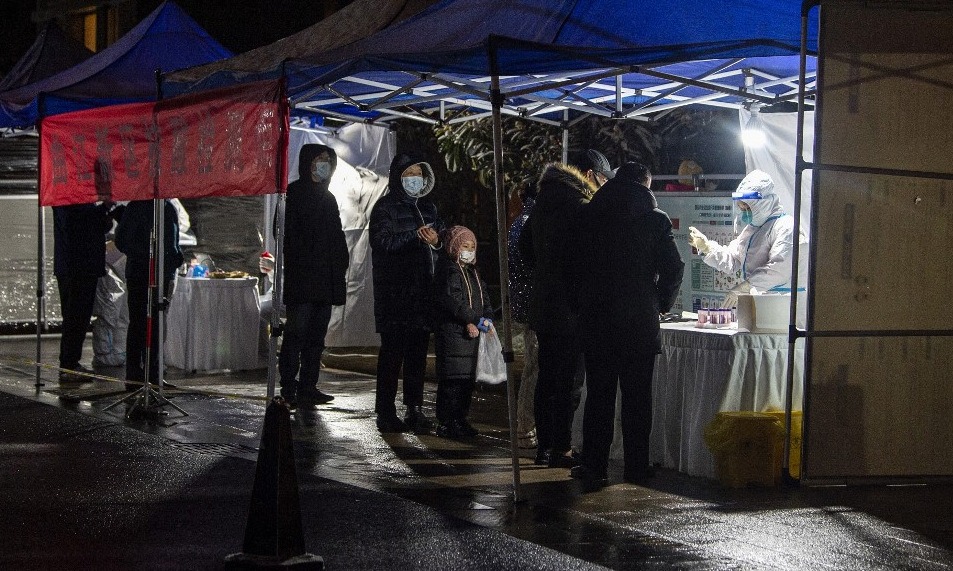 Một điểm xét nghiệm nCoV ở Tây An đêm 25/12. Ảnh: AFP.