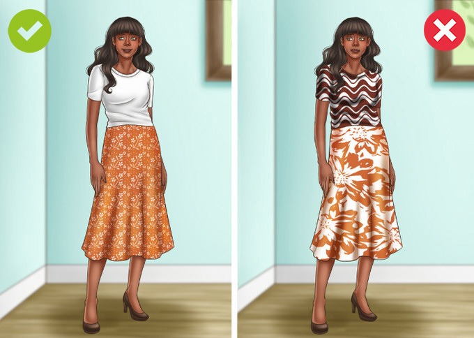 Trang phục không hợp vóc dáng hay lạm dụng họa tiết bản lớn sẽ làm mất sức hút của bạn.