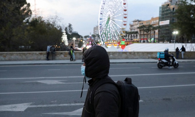 Một người đeo khẩu trang trên con phố ở Nicosia, CH Cyprus cuối tháng 12/2021. Ảnh: Reuters.