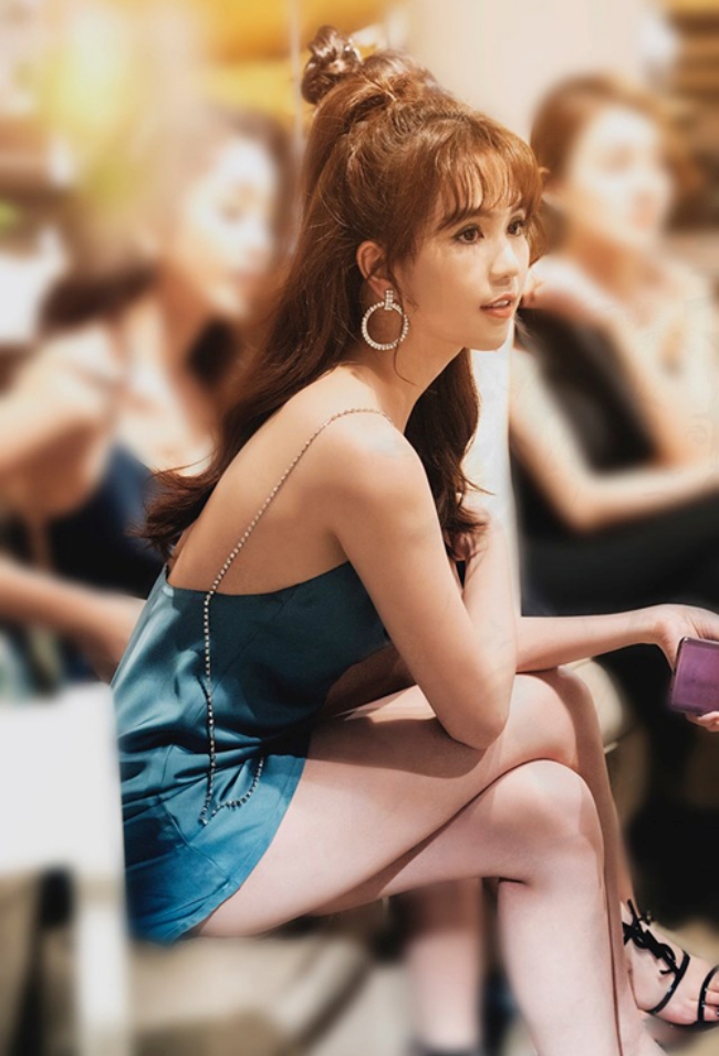 Mới đây, Ninh Dương Lan Ngọc có xuất hiện tại một sự kiện trong trang phục lụa có thiết kế xẻ đùi.
