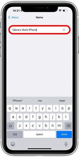 Vào mục Name, người dùng nhập vào tên mới cho iPhone, rồi bấm Done.