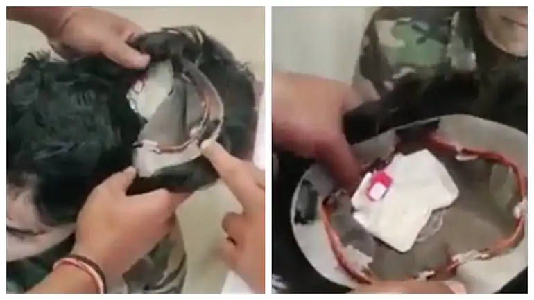 Đoạn video do nhân viên cảnh sát Rupin Sharma chia sẻ trên Twitter, video cho thấy chàng trai đã bị bắt quả tang đang gian lận khi đi thi. Khi video bắt đầu, giám thị phát giác hai tai nghe có gắn sợi dây mỏng của chàng trai. Khi quan sát cẩn thận hơn, giám thị thấy rằng các sợi dây được gắn vào một thiết bị bluetooth được giấu cẩn thận trong bộ tóc giả của chàng trai này.