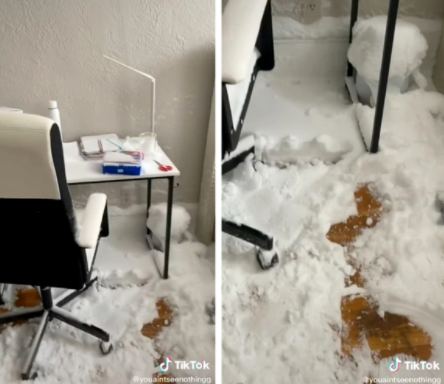 "Hậu quả của việc quên chốt cửa sổ trong một cơn bão tuyết ở Boston," thông điệp đăng kèm video viết. Người đăng tải video được cho là bạn cùng phòng của cô gái.