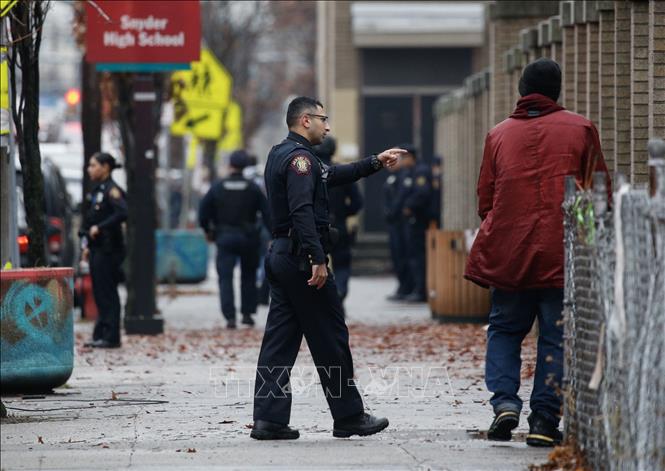 Cảnh sát được triển khai tại hiện trường vụ nổ súng ở thành phố Jersey, bang New Jersey, Mỹ. Ảnh minh hoạ: AFP/TTXVN