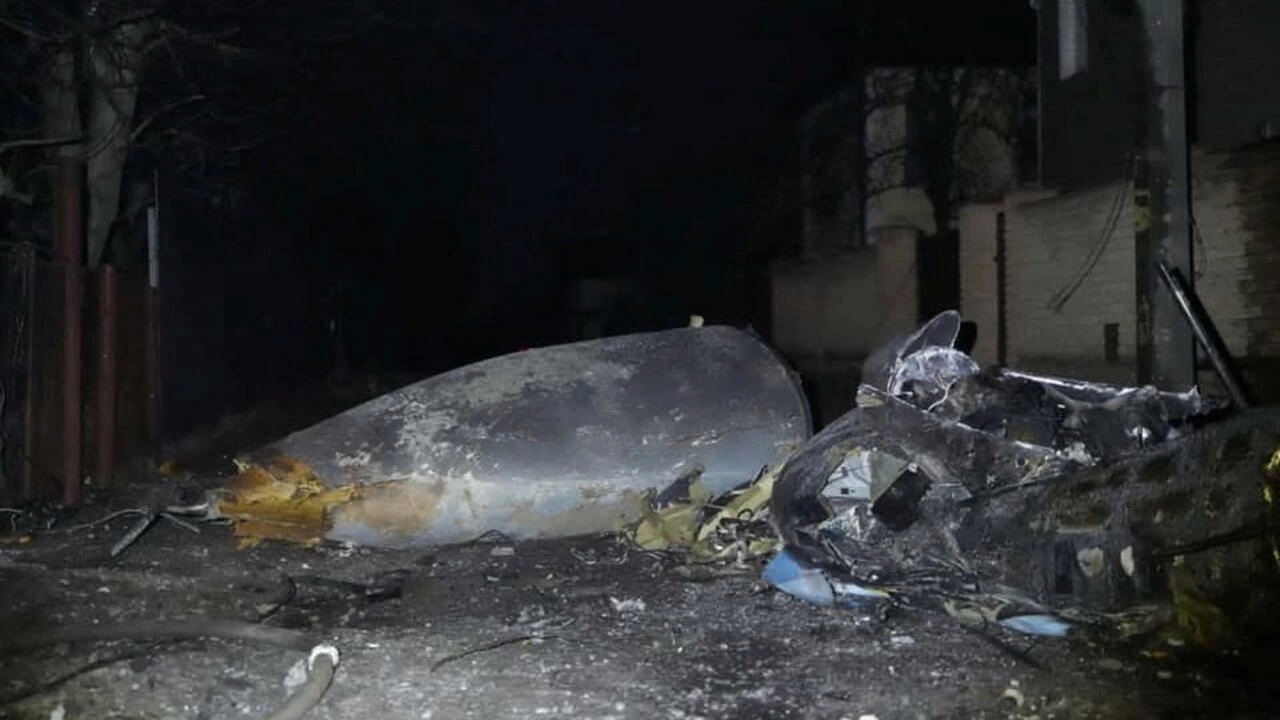 Đống đổ nát với xác một chiếc máy bay trong một khu dân cư ở Kiev, Ukraina, ngày 25/02/2022. via REUTERS - HANDOUT