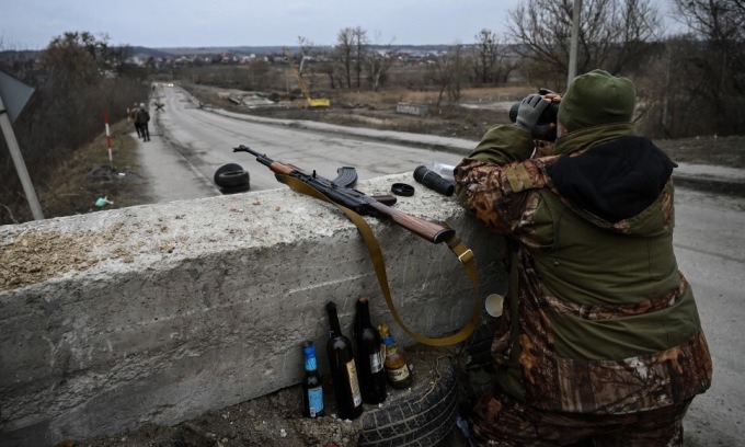 Lính Ukraine tại một chốt chặn ở thủ đô Kiev hôm 6/3. Ảnh: AFP.