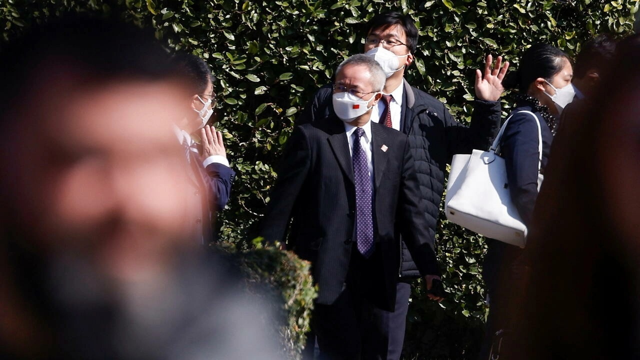 Phái đoàn Trung Quốc rời khách sạn Cavalieri Waldorf Astoria, sau cuộc hội đàm với phái đoàn Mỹ, Roma, Ý, ngày 14/03/2022. REUTERS - GUGLIELMO MANGIAPANE