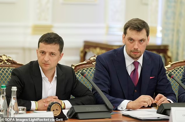 Ông Honcharuk (ngoài cùng bên phải) ngồi bên cạnh Tổng thống Zelensky khi còn đương chức. Ảnh Daily Mail