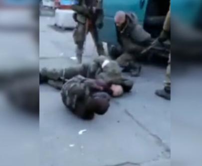 Những tù binh bị nhóm binh sĩ có vũ trang thẩm vấn. Nhiều binh sĩ đeo băng tay màu xanh, thường được các đơn vị Ukraine sử dụng. Một số tù binh dường như đã chết trong quá trình này. Video cũng cho thấy ba tù binh khác bị yêu cầu ra khỏi xe và bị bắn vào chân.