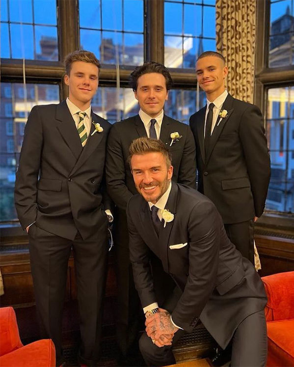 Becks và các nhóc Romeo, Cruz đều đóng vai trò quan trọng trong hôn lễ cậu cả Brooklyn. Ảnh: Instagram Victoria Beckham