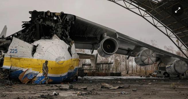 Máy bay lớn nhất thế giới vỡ nát ở Ukraine. Thật xót xa, giữa đống đổ nát và mảnh vụn ở Kyiv có phần còn lại của máy bay Antonov AN-225 khổng lồ từng lập kỷ lục Guinness về chiếc máy bay lớn nhất thế giới.