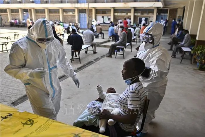 Nhân viên y tế lấy mẫu xét nghiệm COVID-19 cho người dân tại Ruaraka, Kenya. Ảnh (tư liệu): AFP/TTXVN