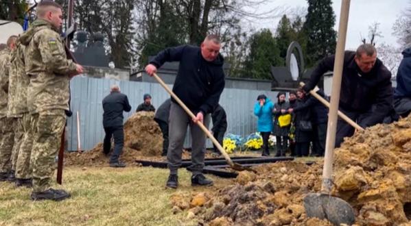 Chôn cất những người thiệt mạng vì xung đột ở Ukraine. (Ảnh: CNN)