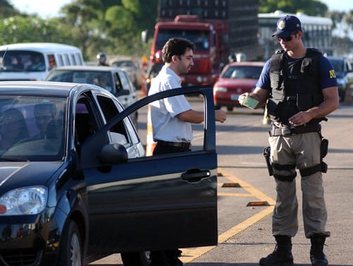 Tay cảnh sát phạt anh chàng thêm tội lái xe trong tình trạng say xỉn.