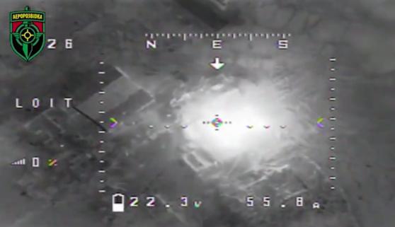 Đoạn video được chia sẻ bởi Aerorozvidka - đội đặc nhiệm trinh sát thuộc quân đội Ukraine chuyên tác chiến bằng máy bay không người lái và vũ khí công nghệ cao - cho thấy khoảnh khắc tên lửa Ukraine được thả xuống một trong những xe tăng tiên tiến nhất của Nga trên chiến trường.