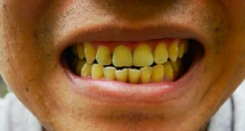 Hút thuốc lá thường xuyên khiến răng bị ố vàng do hắc ín có trong thuốc thoát ra nhờ khói thuốc tiếp xúc với men răng và làm răng đổi màu.