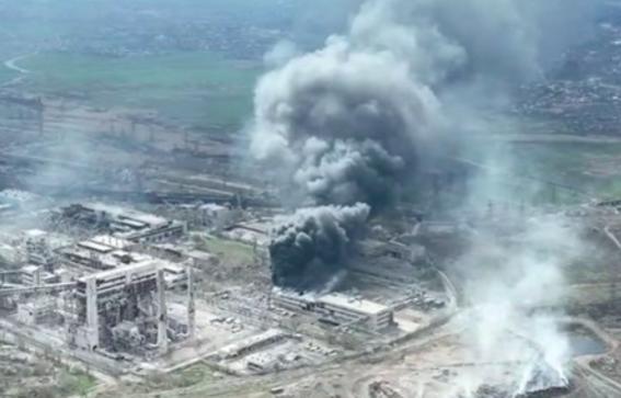 Bên ngoài nhà máy thép Azovstal. Ảnh Uawire