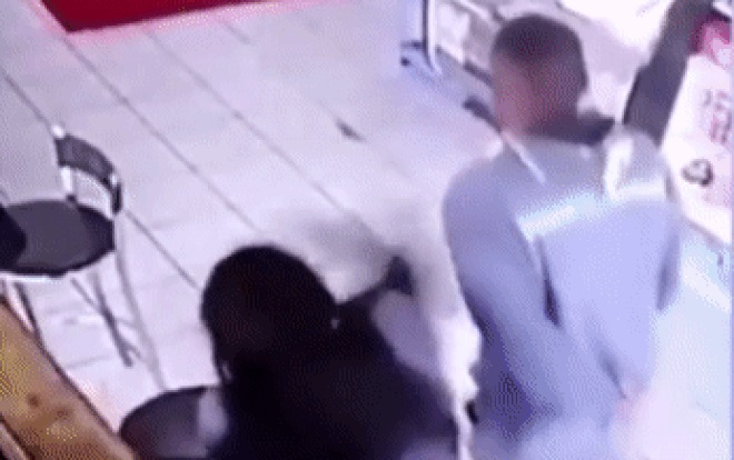 Liên tục nhận cú đấm từ cô gái trẻ, tên yêu râu xanh không thể phản kháng lại được, đành đứng im chịu trận. Mãi sau đó, khi một người phụ nữ khác tiến tới để can ngăn, cô gái trẻ mới chịu dừng tay. Sau đó, gã biến thái nhanh chóng "lẩn" khỏi quán cà phê một cách xấu hổ.