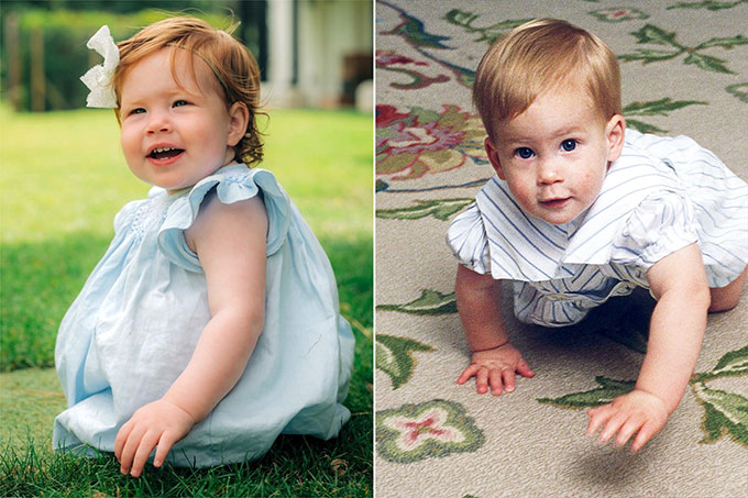 Lilibet (trái) và bố, Hoàng tử Harry, khi cùng một tuổi. Ảnh: UK Press